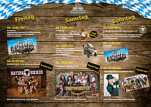 Ab 20 Uhr werden die Mitglieder der "Bayernrocker" mit ihrer einzigartigen Mischung aus Party, Volks- und Rockmusik der letzten 40 Jahre das Zelt in einen "brodelnden Hexenkessel" verwandeln und eine Show der Superlative bieten.